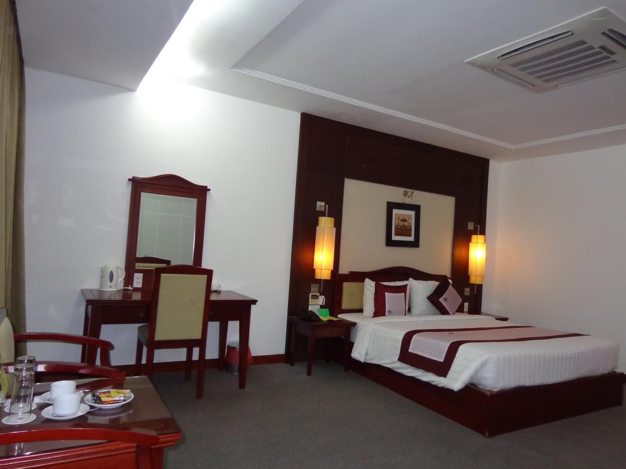 Phòng Cao Cấp mang đến không gian rộng rãi và sang trọng hơn với trang thiết bị cao cấp. Du khách sẽ được trải nghiệm dịch vụ phòng 24/7, bàn làm việc, két sắt và nhiều tiện ích khác, phù hợp cho cả công tác và nghỉ dưỡng. Thiết kế tinh tế và nội thất cao cấp chắc chắn sẽ làm hài lòng những khách hàng khó tính nhất.